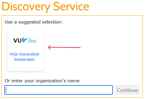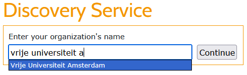 2. If you visist DMPonline for the first time, you have to enter vrije universiteit amsterdam, select the entry that appears and click Continue